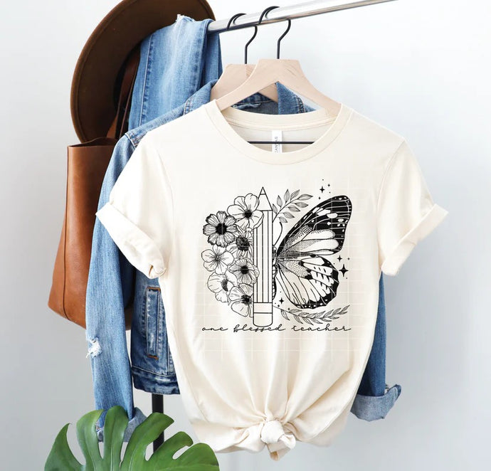 one blessed teacher (flowers / pencil)