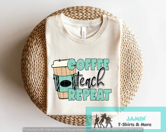 Coffee Teach Repeat (teal crayon)